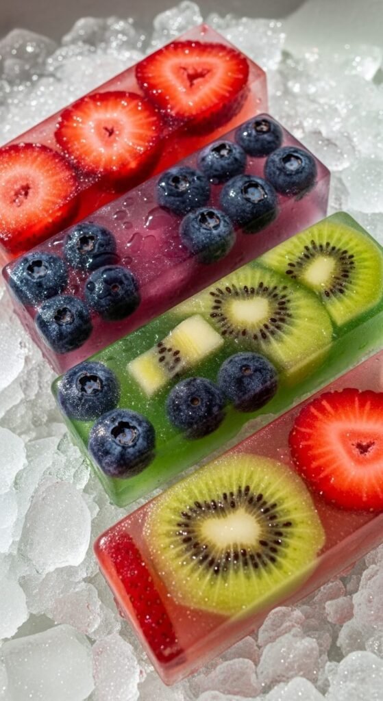 - Extra sliced fruit to press into the molds before filling