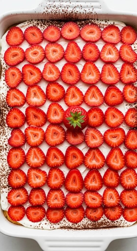 - Fresh sliced strawberries arranged in overlapping rows across the entire surface
