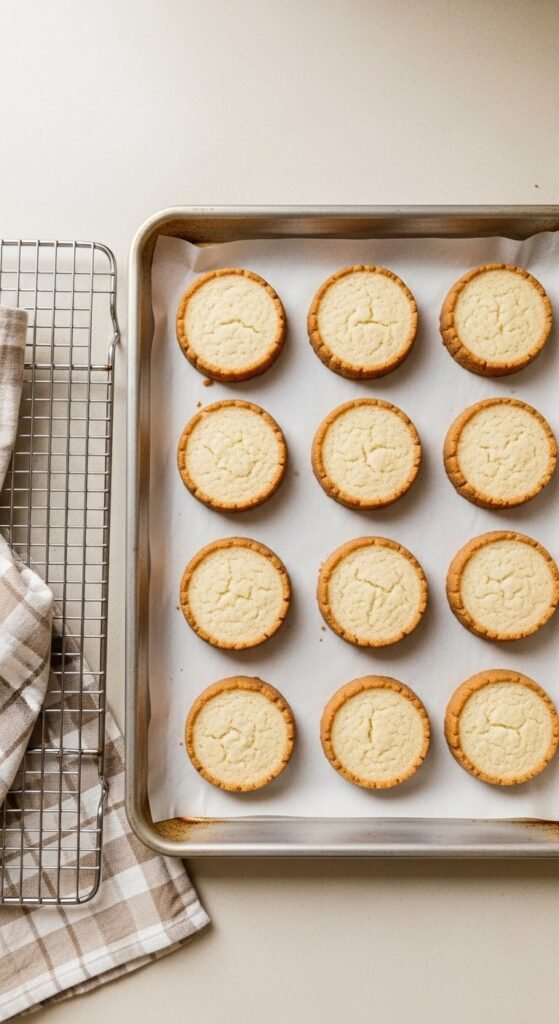 - Bake for 10–12 minutes until the edges are just turning golden. The centers will look slightly underdone — that’s correct. They firm up as they cool.