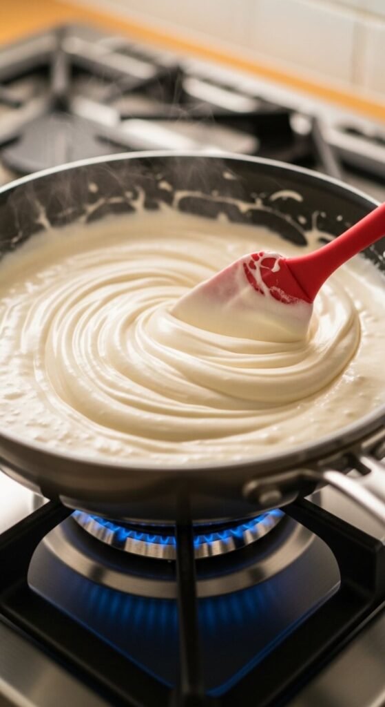 - Keep the heat on low and stir gently and constantly.