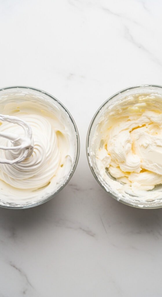 - Beat the room-temperature cream cheese on medium-high speed for two full minutes until completely smooth and slightly fluffy — no lumps
