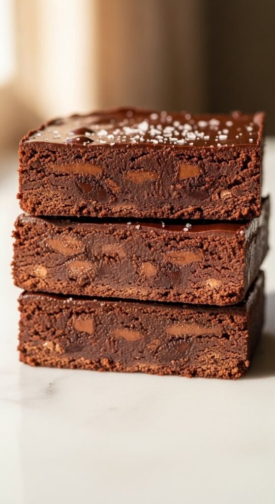 The ganache-style topping is what gives these brownies their glossy, bakery-worthy appearance and that satisfying chocolate snap when cut cold.