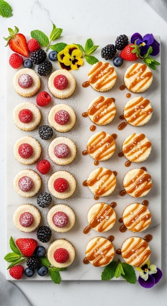 Party desserts live or die by three things: how easy they are to serve, how well they hold up over a few hours, and how impressive they look on a platter. These cheesecake bites nail all three — and then some.