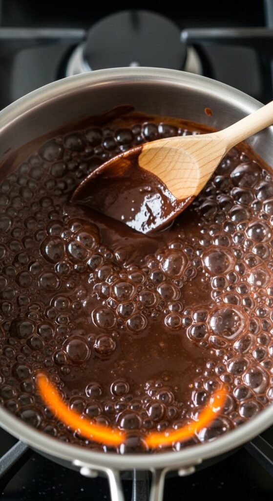 Why 60 seconds matters so much: The sugar needs to reach approximately 235°F (soft ball stage) to set properly when cooled. In most home kitchens at medium heat, a full rolling boil held for 60 seconds gets you there reliably. If you have a candy thermometer, use it — 235°F is your target. If you don’t, the 60-second rolling boil method works beautifully.