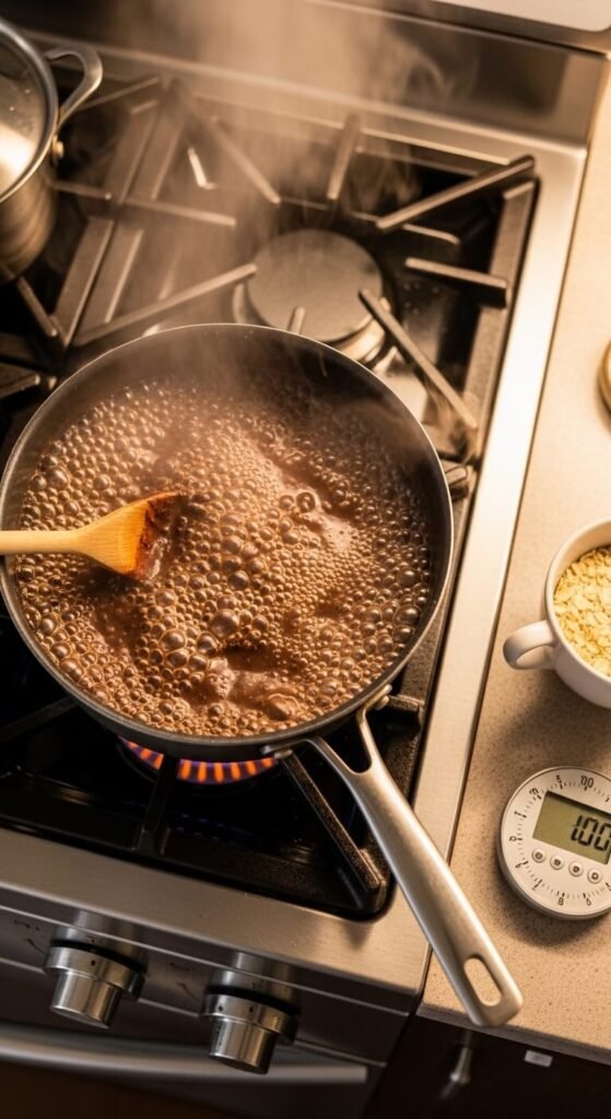 - Bring to a full rolling boil — not a simmer, a boil — and hold it there for exactly 60 seconds, stirring continuously