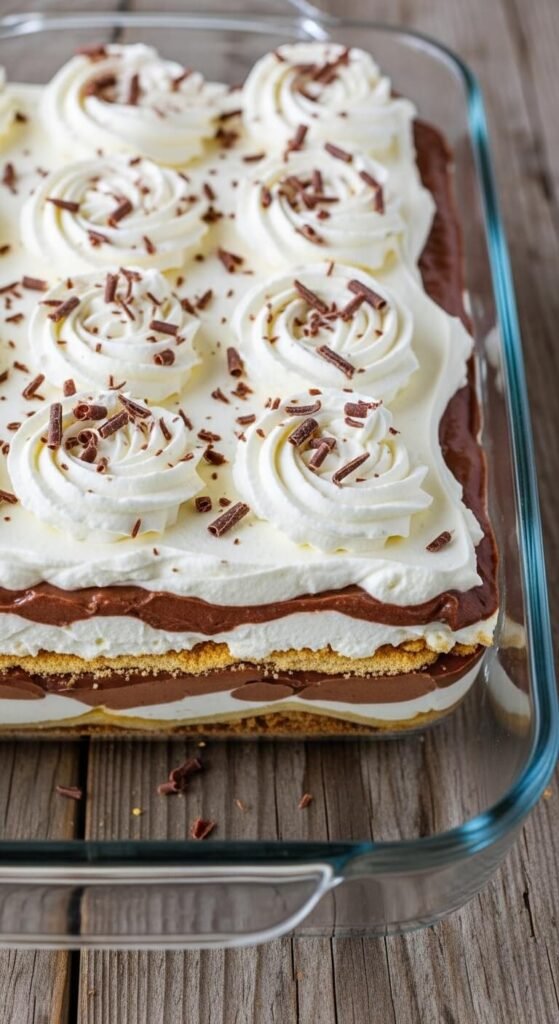 Imagine all the comfort of a classic lasagna — but make it sweet, creamy, and completely oven-free. This No-Bake Lasagna Dessert is the kind of recipe that stops the scroll and demands a second look. Layers of silky cream cheese filling, rich chocolate pudding, fluffy whipped topping, and a buttery graham cracker “noodle” layer come together in one jaw-dropping dish that tastes even better than it looks.