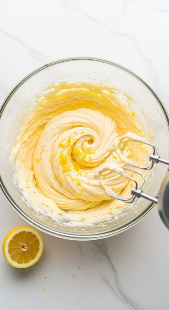 Taste the mixture at this point — it should be boldly lemony, creamy, and just sweet enough. If you want more citrus punch, add a little extra zest. Trust your palate.