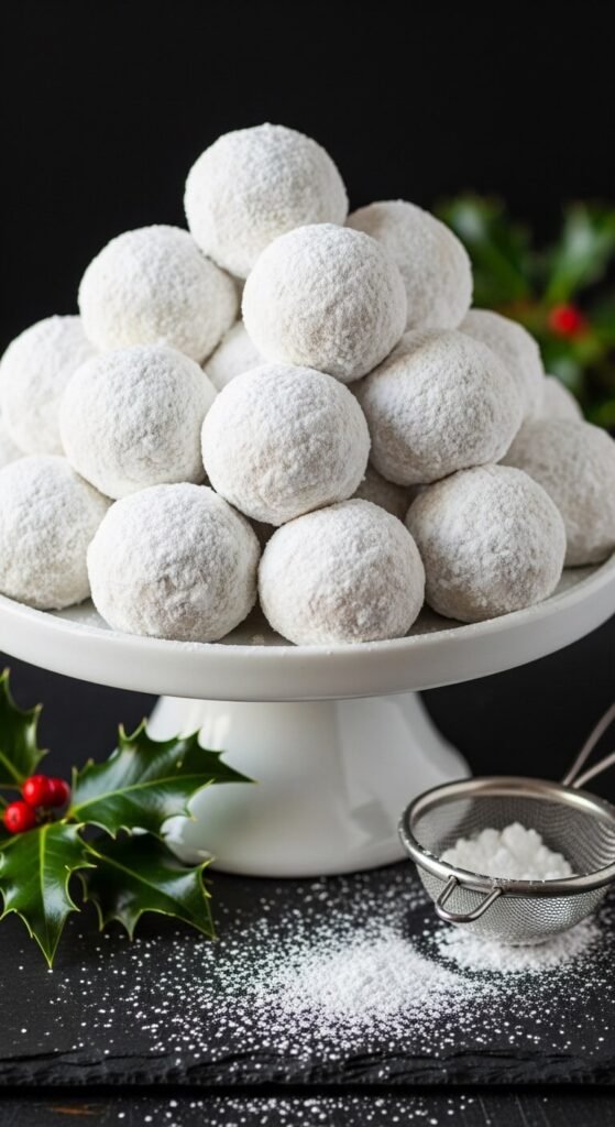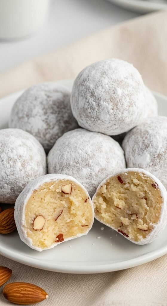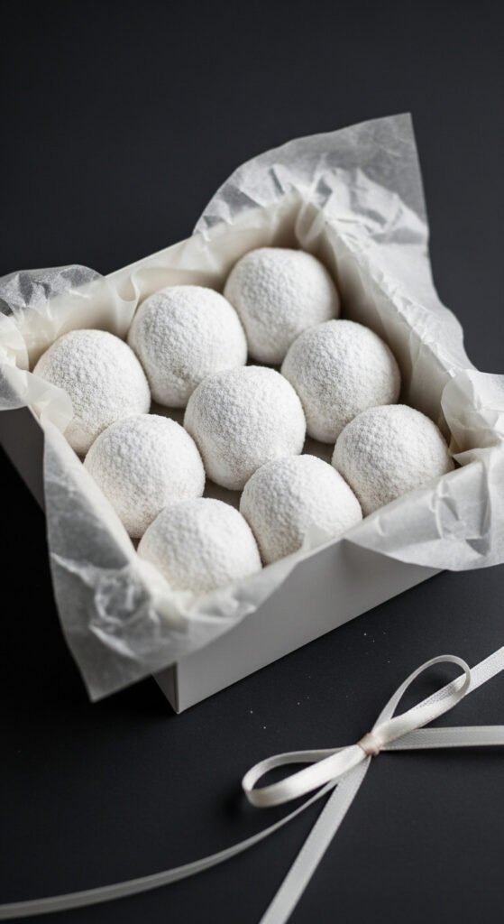 Double rolling tip: Roll each ball in powdered sugar twice — once right after shaping, then again after the 30-minute chill. The second coating adheres to the firmed surface more completely and gives a thicker, more opaque white finish that makes them look genuinely like snowballs.