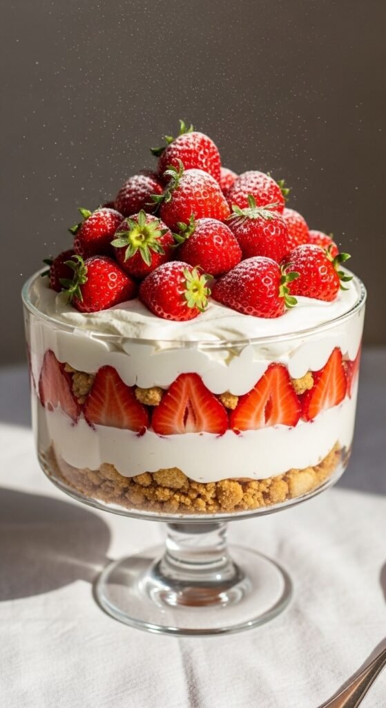This recipe makes a generous trifle-style dessert that serves 8 to 10 people — perfect for a summer gathering, a dinner party, or simply because you came home from the farmers’ market with more strawberries than you planned.