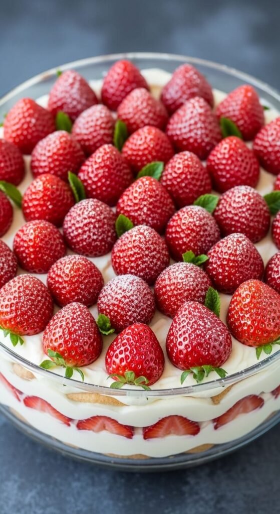 - Fresh whole strawberries — your reserved beautiful berries, arranged crown-like on the very top