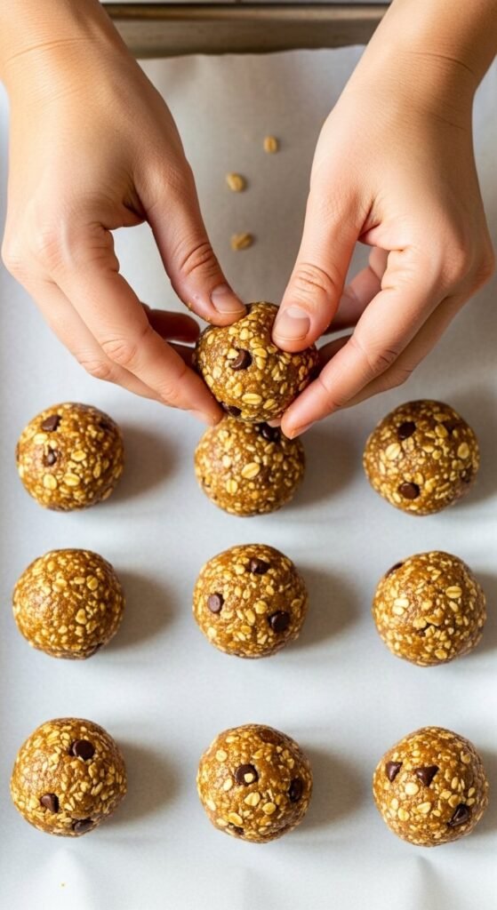 - Refrigerate for 30 minutes before rolling. This is the step that separates clean, round protein balls from misshapen lumps. Cold mixture holds its shape during rolling. Room temperature mixture sticks to your hands and softens before you can form it properly.