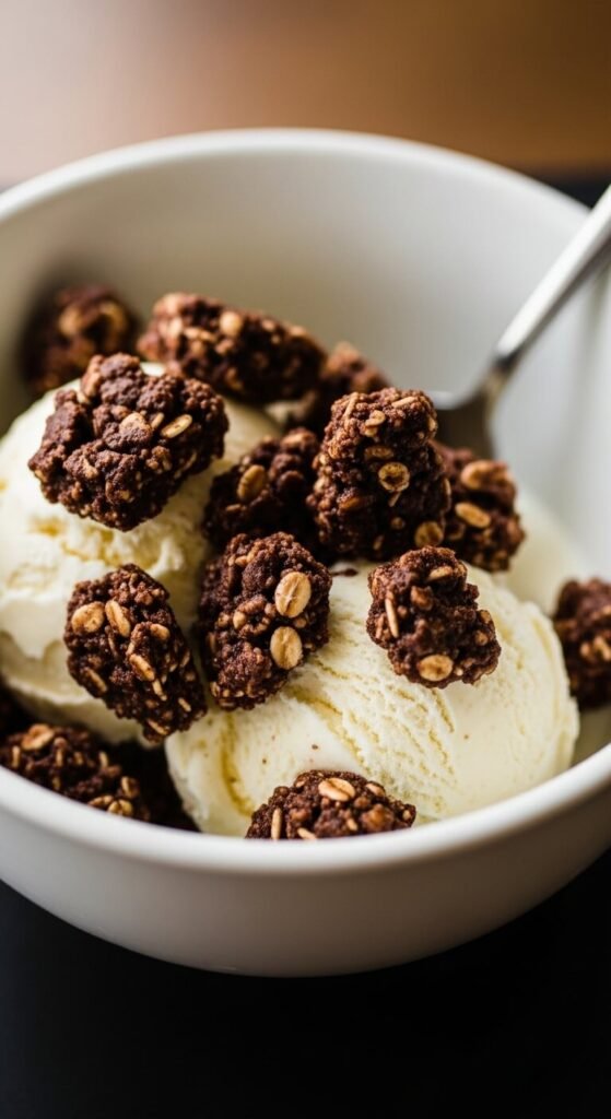 - Ice cream topping: The chocolate-peanut butter-oat crumble is genuinely extraordinary over vanilla ice cream — better than any store-bought ice cream topping you’ve had