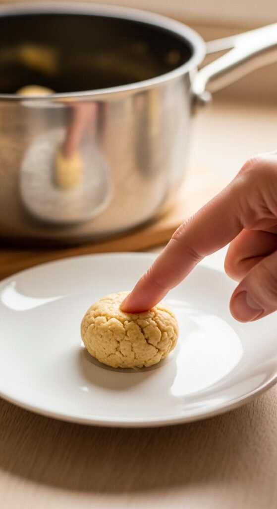 Before dropping cookies onto parchment — while the mixture is still in the pan — you can predict how they’ll set with a quick test.